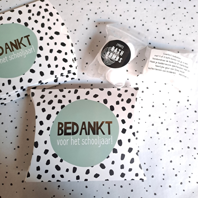 Gondeldoos | Badbombs| Bedankt voor het SchooljaarGONDELDOOS 3ST. BADBOMBS - BEDANKT VOOR HET SCHOOLJAAR(voeten) badballen in een super leuk gondeldoosje met de tekst bedankt voor het schooljaar! met 1 of 2 bath bombs vul je in een handomdraai de badkuip. Met 1 badbom heb je…