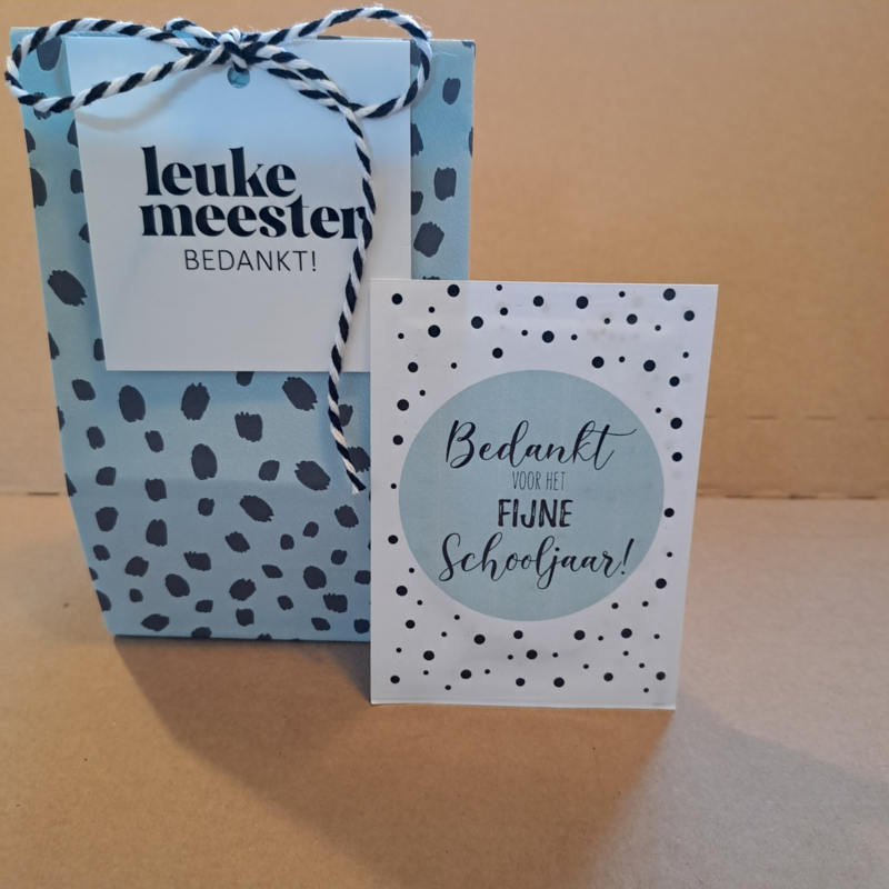 Zakje zaad- leuke meester | Bedankt voor het fijne schooljaarZAKJE ZAAD MET VERGEETMENIETJES | BEDANKT VOOR HET FIJNE SCHOOLJAAR LEUKE MEESTERWat is het toch een lief gebaar om dit zakje zaad vol met vergeet me nietjes zaad te geven, zodat meester de hele zomer mag genieten van jou…
